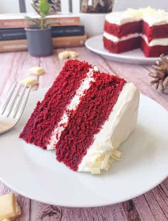 Esta tarta de Red Velvet auténticamente americana es perfectamente húmeda sin tener una miga demasiada compacta, que a veces pasa con la humedad. Me encanta montar la tarta con mi glaseado favorito de Philadelphia, y para un capricho la decoro con chocolate blanco. Sale bonita y deliciosa. ¿Qué más puedes pedir?