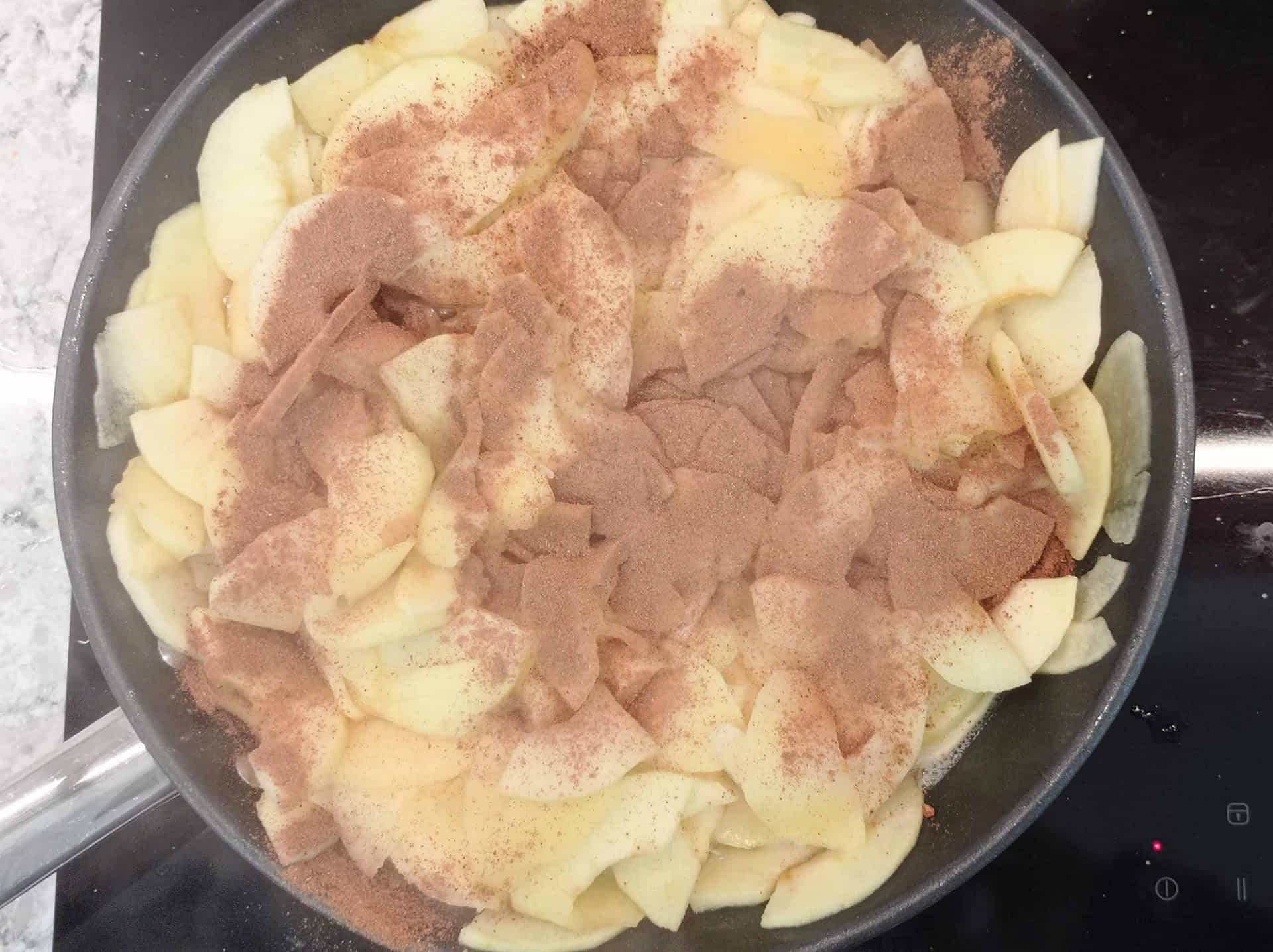 - Cortar las manzanas en trozos del mismo tamaño. Lo más grueso requerrá más tiempo de cocinar. Ver las instrucciones en el post para pre-cocinar el relleno si deseas.