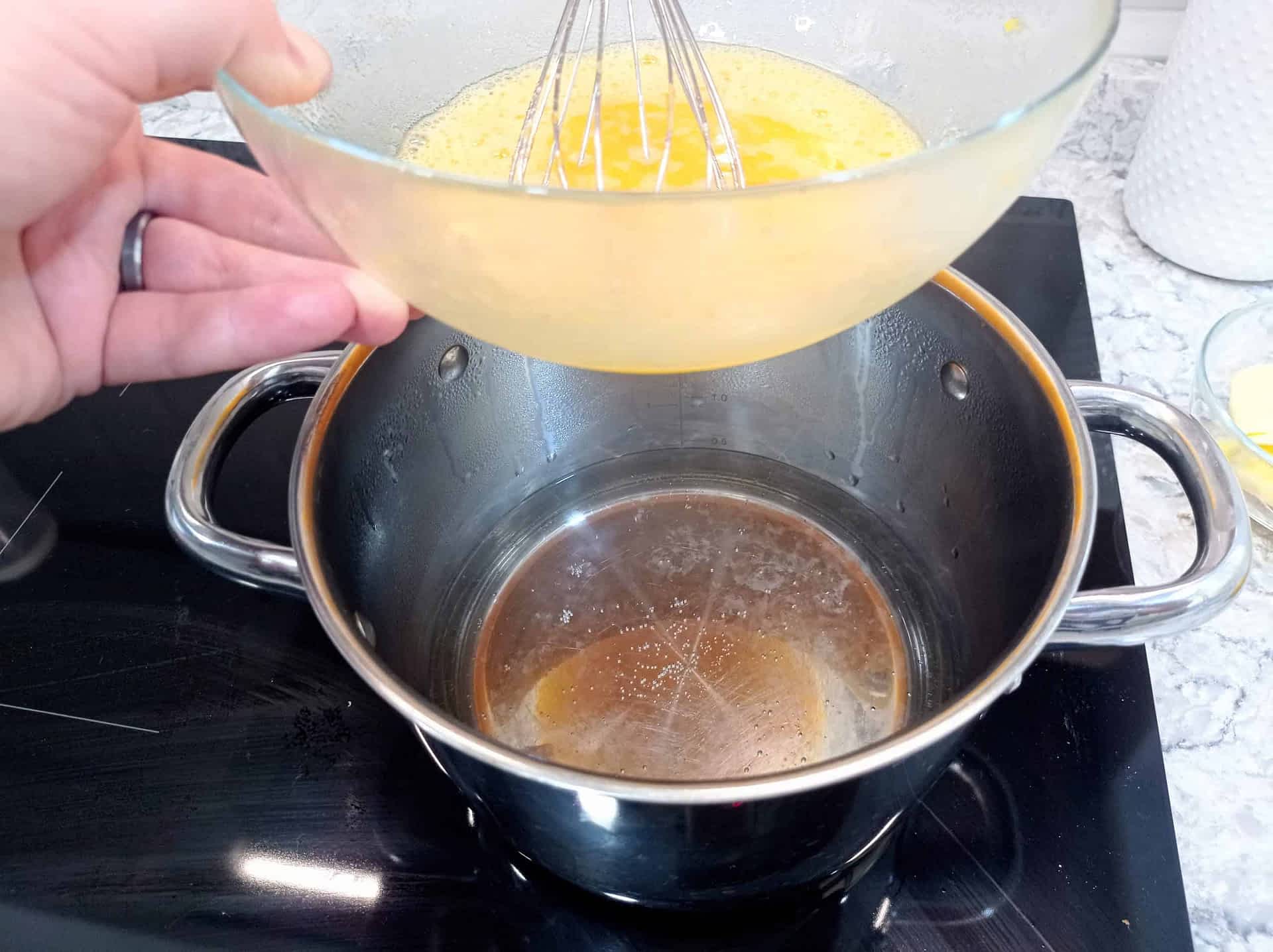 - Sacar el bol del fuego cuando la salsa se espese.