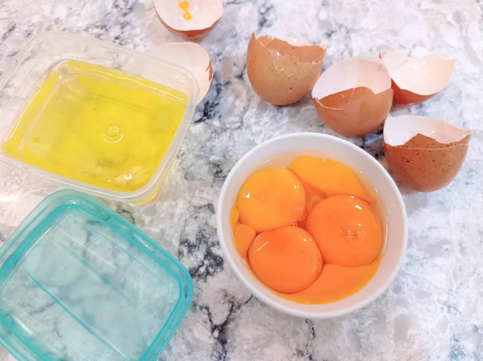 - Yemas de huevo: Las yemas de huevo tienen más grasa y menos agua que las claras, lo que hace que nuestra salsa sea más rica y suave. ¡Guarda las claras para otra receta! (También se congelan bien crudas :D)