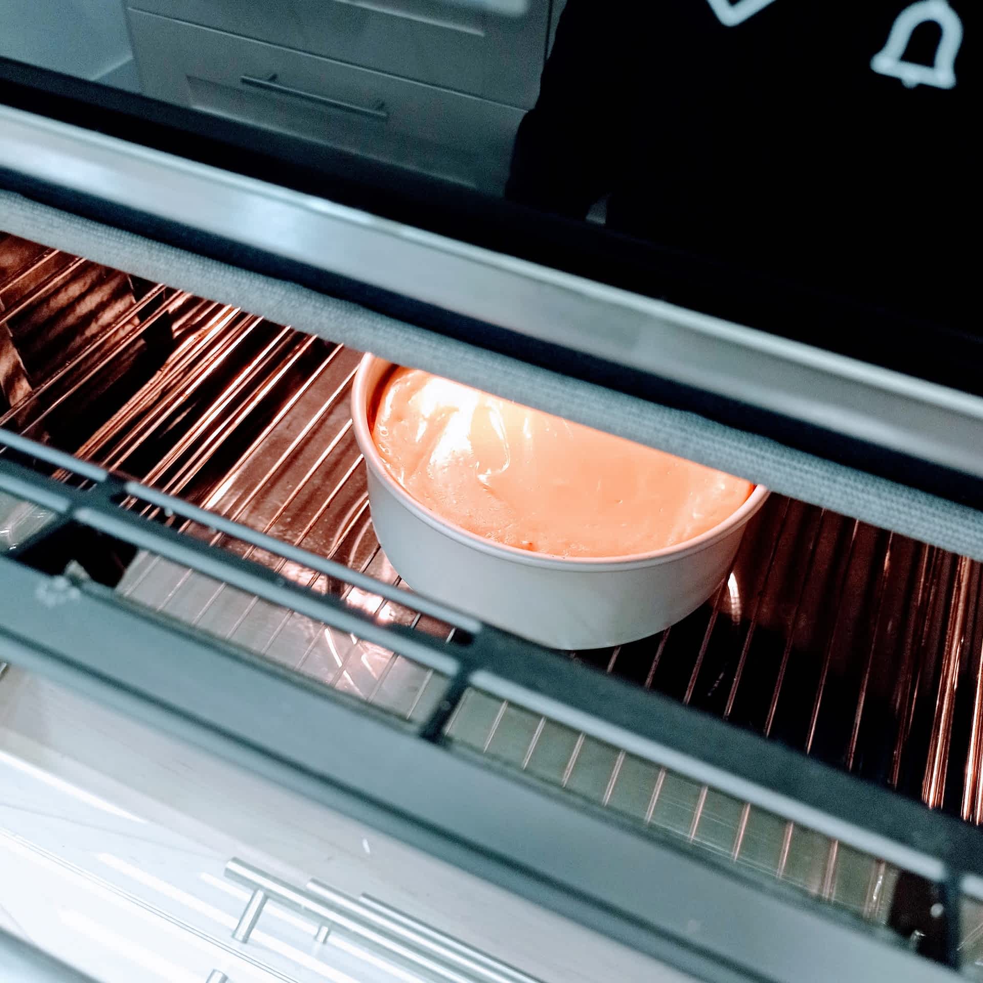 - Hornea durante 30 minutos a 160°C. Reduce la temperatura a 120°C y continúa horneando 30 minutos más.
