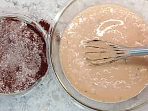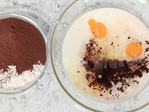 En un tazón mediano, combinar la harina, cacao en polvo, bicarbonato y levadura en polvo.