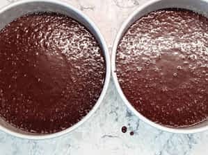 Dividir la masa entre los moldes preparados. Hornear 30-35 minutos hasta que un palillo metido en el centro del bizcocho salga limpio. Dejarlos enfriar en sus moldes 20 minutos antes de sacar cuidadosamente los bizcocho y colocarlos en una rejilla para enfriar por completo.