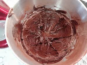 En el tazón de una batidora de pie (o de mano), batir la mantequilla con el azúcar glas, el cacao en polvo, y la sal. Detenerla al menos una vez y raspar los lados del tazón.